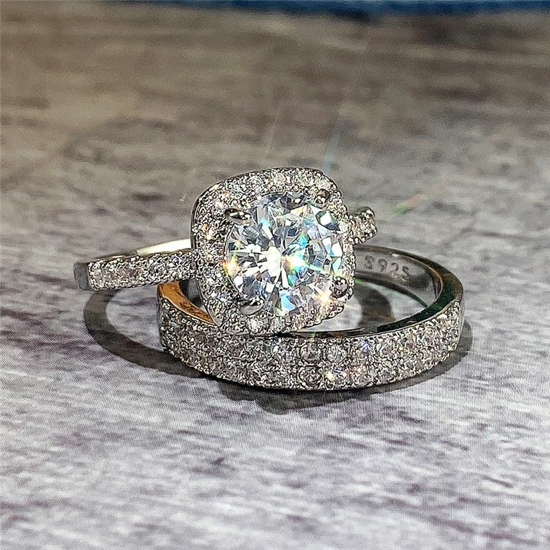 Why Choose Fashion 18K White Gold Plated Bright cut Bridal Wedding Ring Set Jewelry Gifts Cubic Zirconia Two-in-One Halo Engagement Promise Eternity Ring Set(7)?