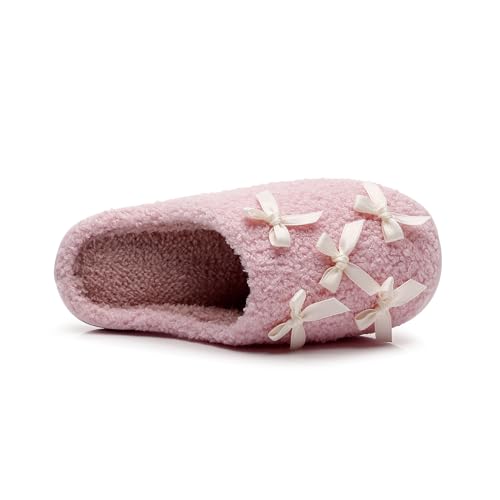 Women Slippers Cute Bows Cozy Fleece Indoor Outdoor Shoes Anti-Slip Sole, Cute Winter House Wearing