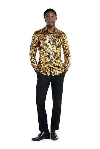 Fabric type: SyntheticCare instructions: Machine WashOrigin: ImportedClosure type: ButtonDISCO PARTY: Be the disco ball on the dancefloor, sparkle and glow bright in this shiny shirt. Shimmery silver with the square grid so you will look like that iconic orb we always dance to. Discoballer is for those who have a nostalgic heart but fearless confidence because all eyes will be on you. Go Go Discoballer!CHECK YOUR SIZE: Our awesome shirts are outstanding in any situation, so help yourself out and make sure to measure yourself! You don't want to ruin the party with a small shirt, do you? Check the measure guide within the images and make sure that you receive a size that suits your needs! The shirt fitting is Slim Fit, so if you are doubting between two sizes, we advise to pick the larger one!PERFECT FOR ANY OCCASION: modern button-up shirt. Perfect under a stylish suit and great for year-round occasions such as a bachelor party, a wedding, a festival, a sporting event or any type of party where you want to stand out.INCLUDED IN YOUR OUTFIT: All shirts have button closure and a modern tailored cut for a stylish fit. The OppoSuits men's shirts consist out of 60% cotton 40% polyester & are Machine Washable. The package is including 1 button-up shirt.ABOUT OPPOSUITS: We want to provide people with stylish, yet affordable suits. Our suits represent those who don't take themselves too seriously but still want to maintain a sense of style. OppoSuits was founded in 2012 and started as an idea between friends that has grown to an international phenomenon. We have you covered for any event with their wide selection of Suits, Shirts, Dress shirts, Blazers, Tuxedos, Costumes, Onesies and Summer Sets. Perfect for everyday use. finest materials and excellent craftsmanship ensure long-lasting durability.
