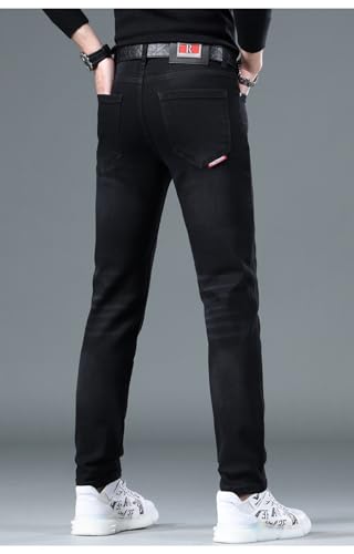 Jeans Pants Trousers Denim Men's Black Minimalist Slim Fit Small Leg Spring and Autumn Casual Elastic Long