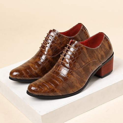 Santimon Men's Crocodile Print Dress Shoes Cuban Heel Formal Pointed Toe Lace-Up Oxfords for Wedding Party Prom Business, Faux Leather, Non-Slip Dance Shoes