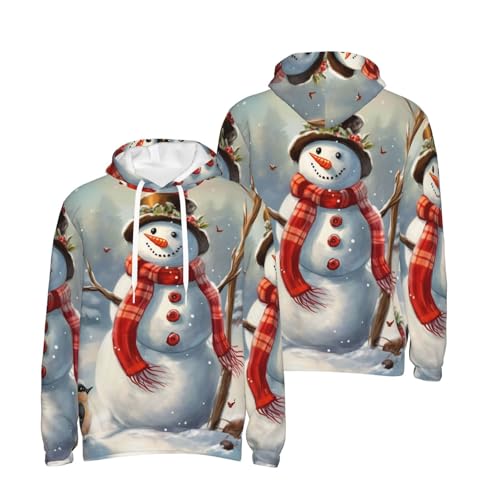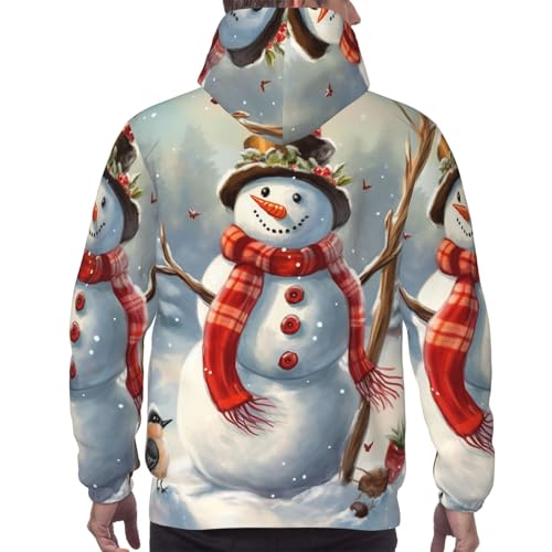 Men's Fleece Pullover Hoodie Long Sleeve Hooded Snowman Christmas Sweatshirt Casual Shirts With Pockets