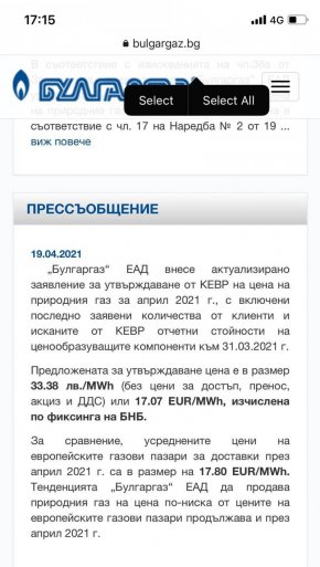 От Булгаргаз обясняват, че предложената цена е по-ниска от средните европейски – 17,07 евро за мегаватчас срещу 17,80 евро за мегаватчас.