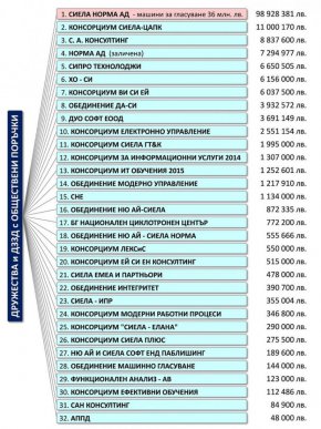 На 24 февруари Сиела пак има повод да черпи. Взема 594 000 лева по процедура с възложител Висшия съдебен съвет. Процедурата е за софтуерна система за контрол на дейността на вещите лица.