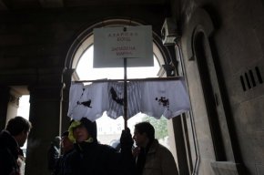 Около 250 учени скандират "Мафия" и "Оставка" пред един от входовете на образователното министерство, предаде БТВ. Някои от тях носят гнили домати, други пък носят изцапано бельо, а над него пише: "Бельото като дискурс". Учените носят и плакати "Оставка за Игнатов и Гюров".