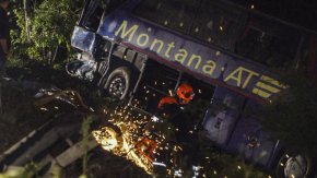 Автобусът падна от 2 метра височина в дере снощи малко преди 20 часа в района на село Смоляновци между Монтана и Видин. Задната част на тира е ударила автобуса странично и го е изхвърлила в дерето. При ограничение от 60 км/ч в участъка, камионът се е движил със 100.