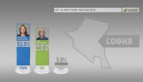 Според екзитпол на Алфа рисърч по поръчка на бТВ, Йорданка Фандъкова побеждава Мая Манолова в битката за кмет на София с 53,5%, Мая Манолова – 40,6%.