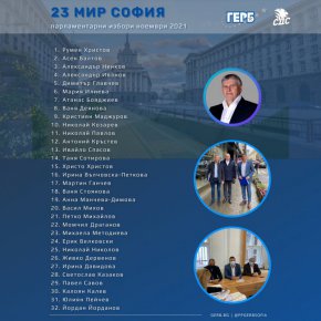 В 24 МИР документите за листата внесоха заместник-председателят на ГЕРБ Даниел Митов, районният ръководител Евгения Алексиева и областният координатор на ГЕРБ в София Тодор Кръстев. „Трябва да излезем от кризата, в която ни вкараха двете поредни служебни правителства на Румен Радев. Коалиция ГЕРБ-СДС ще работи за ясна програма и ясни политически приоритети, около които да се състави правителство. Залагаме на доказани специалисти в своята област. Влизаме в тази кампания със самочувствие и отново ГЕРБ-СДС да е първа политическа сила. Трябва да вземем спешни мерки за справяне с инфлацията, растящите цени и овладяване на пандемията“, каза водачът на листата Даниел Митов.