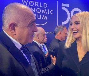 Премиерът Бойко Борисов разговаря в Давос с дъщерята на американския президент Доналд Тръмп - Иванка. Министър-председателят посочи, че беседата им се е състояла, след като двамата са изслушали речта на Доналд Тръмп на Световния икономически форум. От снимките, споделени в социалната мрежа, е видно, че и двамата са в добро настроение. „Споделихме впечатления си от форума и от обръщението на президента на САЩ, в което той изтъкна визията си за редица глобални въпроси”, написа Борисов.