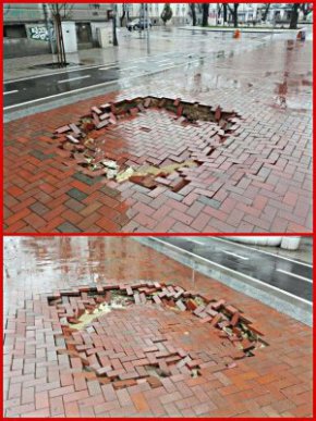 Нов тротоар пропадна във Варна. Инцидентът е част от сериала "Хубаво е, готово е, въпреки това се свлича", който тече навред в страната в последните дни заради валежите, пише Сега. В морския град се сипе дъжд от 2-3 дни - упорит е, но не и интензивен.