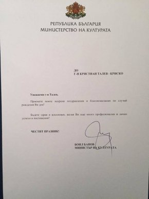 Културният министър Банов започна битуването си на поста с честитка за Криско. Не за Кристо! "Не ме е страх от министъра на културата, а от културата на министъра", беше писал класикът и е съвсем прав за конкретния случай.