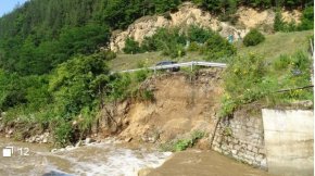 Хора от Областното пътно управление са на място, за да видят какви са щетите. Твърди се, че причина за свлачището е мост, който е правен от местните.