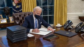 В първия си ден като президент Байдън издаде изпълнителни заповеди за връщане на САЩ към Парижкото споразумение за климата и за задължително носене на маски във федералните сгради и на федерални земи.