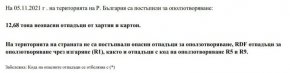 „Внесени са 12,68 тона отпадъци от хартия и картон. На територията на страната не са постъпвали отпадъци за оползотворяване при изгаряне RDF за оползотворяване чрез изгаряне R1, както и с код на оползотворяване R5 R9”.