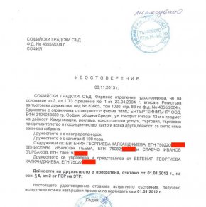 Гинкиния съпруг Славчо Върбаков, чиято кума също е все още министърът на енергетиката Теменужка, е съдружник на Жени Калканджиева във фирмата ММС Ентертейнмънт. По времето, когато тя е основана, Калканджиева е приятелка на единия от лидерите на СИК - Маргина, разкри сайтът Биволъ. Дружеството е било с предмет комуникации и реклама, въпреки че в заглавието му присъства думата "забавление". Регистрирано е в най-силните години на агенция Визаж.