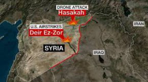Иран и САЩ си размениха удари. Техеран атакува със сензационно пропуснати от ПВО дрон и ракети град американска база на окупирани от САЩ територии в Сирия, близки до местонаходища на петрол. При това е загинал 1 човек от персонала, а ответният удар отне от 9 до 11 живота на бойци от проиранска групировка отново на сирийска територия, както личи на картата, публикувана от CNN, на която са обозначени двете огневи точки.