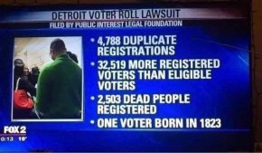 В оказалия се решаващ щат Мичиган, където разликата е повече от 1% и Тръмп не може да жали, съдебното дело по оспорване вече е заведено от Фондация Публичен интерес. Оказва се, че на изборите само в Детройт - най-населения град в щата, са гласували 2503 мъртъвци, като рекордьорът е почти на 200 години – роден е през 1823 г., съобщава Фокснюз. 4788 са гласували на две места. Подадени са 32 519 повече бюлетини, отколкото са избирателите.
