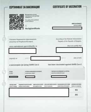 Българският сертификат за поставена ваксина срещу COVID-19 отговаря на изискванията на държавите-членки на Европейския съюз, като е надграден с QR код, позволяващ достъп от всяка точка на света;