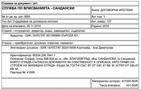 В това време през ноември 2019 г. Хърсев и Ко. на бившия подуправител на БНБ Емил Хърсев дава ипотека от 431 000 лв. срещу зданието в Сандански, разположено сред прекрасна природа. Парите са усвоени, както се разбира от статията, въпреки че самият Хърсев не коментира пред Биволъ.