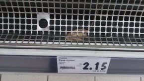 Клиент засне мишка на хладилна витрина с хранителни продукти в хипермаркет в квартал Надежда в София.