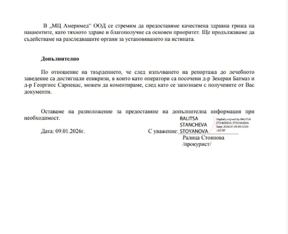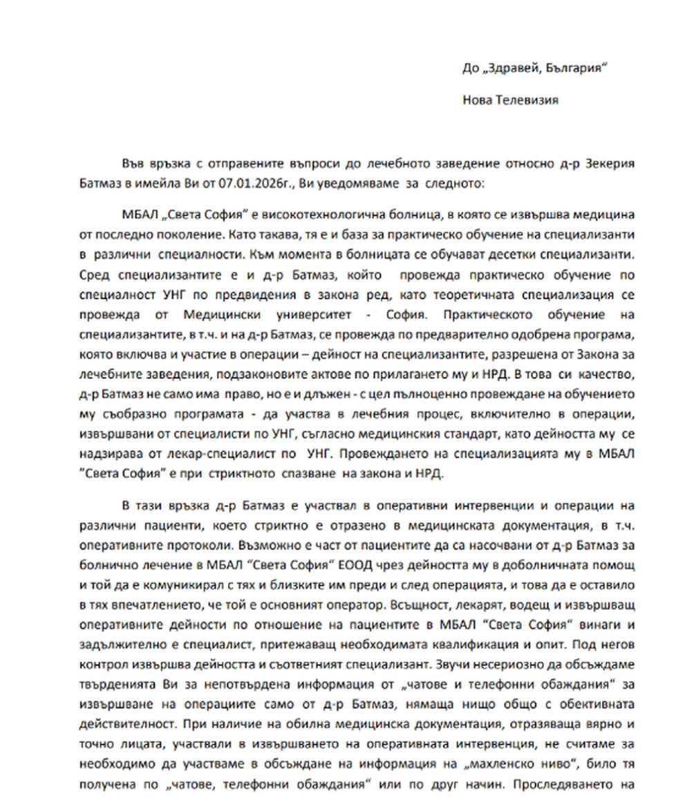 Защо обаче, когато са настъпили усложнения, същите пациенти не са получили помощ от подписания специалист – не става ясно. Самият доктор Зекерия Батмаз и неговият адвокат отказват поканата ни за интервю.