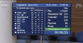69 души от ГЕРБ, 33 от Възраждане, 3 от ДПС-НН, 8 от БСП, 12 от ИТН и 2 независими депутати гласуваха "за". Против бяха ППДБ (32), 24 депутати от ДПС-НН, 7 от БСП, 14 депутати от АПС, 6 от Величие и трима независими. Парламентарната група на МЕЧ се въздържа от гласуването, както и 1 независим.