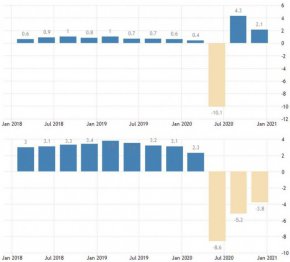 Спрямо четвъртото тримесечие на 2019 г. обаче БВП се свива с 3,8%, но след спад с 4,6% през периода юли - септември и с цели 7,8% през април-юни, когато беше отбелязан най-големият икономически спад в нашата страна от началото на 1997 година заради въведените през второто тримесечие на миналата година строги карантинни мерки за ограничаване на първата вълна на коронавирусната пандемия.