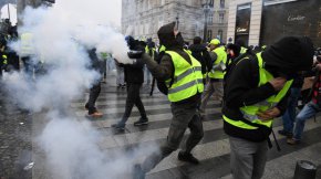 Вчерашните протести бяха белязани от по-малко насилие, отколкото предишните уикенди. В Париж протестиращите се съсредоточиха основно по булевардите "Шан-з-Елизе", "Осман" и на площада пред операта. Над 100 души бяха задържани. Сред протестите в столицата вчера се открои пърформънсът на пет жени, с червени качулки на главите и разголени гърди, така че да наподобяват на символа на Френската република - Мариан.