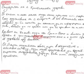Ръкописна бележка, написана от Ивайло Калушев, която бе открита от разследващите в стаята му в хижа Петрохан разпространиха от GlasNews.bg . Записката, написана на лист от балотажна бюлетина, съдържа фрази и психологически елементи, които могат да дадат допълнителен контекст за състоянието на пишещия ги в последните му дни.