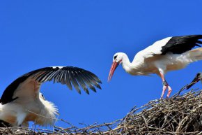 Щъркелите живеят в колонии, но формират трайни двойки – всеки щъркел си има по един партньор за цял живот. Те снасят яйцата си винаги в едно и също гнездо, а унищожаването му се смята за лоша поличба.