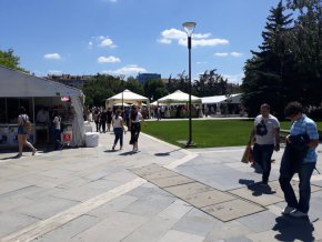 Панаирът на книгата, който бе напъден от Националния дворец на културата в парка пред него заради европредседателството, посрещна вчера първите си гости. Те не бяха така многобройни, както е типично, когато традиционният от десетилетия форум е на обичайната си позиция. Интересно е, че в момента на практика няма някакви мащабни събития от европрограмата, които да налагат извънредните мерки за сигурност. И е странно защо се плашат от книги и книжари. А ако имаше, биха могли и да се пренасочат в бездруго ремонтираната за доста милиони сграда на Втори дом на резиденция Бояна, която също е обект по европредседателството.