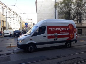 Камион на Технополис паркира върху трамвайните линии по оживената софийска улица Алабин, до Съдебната палата. Полицията не му направи забележка. Автомобили се движеха и по асфалтовата част на пешеходния бул. Витоша от палатата до Позитано, но и това не направи впечатление на органите.