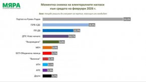 Изводът е от независимата ежемесечна изследователска програма на социологическата агенция Мяра. Изследването е проведено в периода 9-15 февруари 2026 г. по метода „лице в лице“ с таблети сред 812 пълнолетни български граждани.