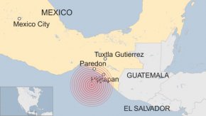 Рано тази сутрин силно земетресение разлюля южната част на Мексиканските съединени щати. Епицентърът е в Тихия океан, на около 87 км югоизточно от град Пихихяпан и на дълбочина 70 км, съобщи Институтът по геофизика на САЩ. Най-малко двама души загинаха в щата Чиапас. Трусът, с продължителност около минута, бе усетен и в столицата Мексико. Целият екип на посолството на Република България е в сградата на посолството на разположение на нашите сънародници там.