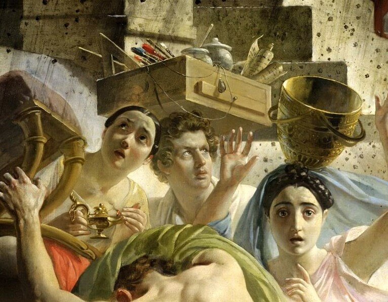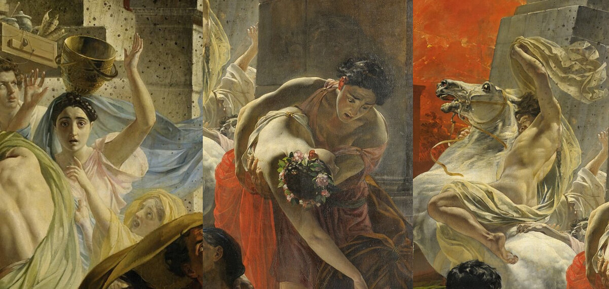 През 1828 г. младият Брюлов живее и работи в Рим. Малко преди това археолозите започнали разкопки на три града, загинали под пепелта на Везувий. Да, да, били са три. Помпей, Херкулан и Стабии.