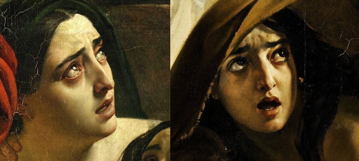 В картината можете да видите и личните преживявания на Брюлов. Може да се забележи, че всички главни героини на платното имат едно и също лице.