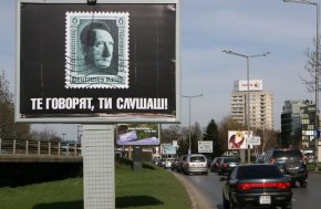 Огромният билборд със снимка на нацисткия лидер Адолф Хитлер се появи днес недалеч от посолството на Израел в София. На рекламния плакат лицето на Хитлер е показано като пощенска марка на Германския Райх, предаде репортер на БГНЕС. Текстът под марката е "Те говорят - ти слушаш". Тази година, на 20 април, се навършват 120 години от рождението на Хитлер. Фюрерът се смята за един от най-големите престъпници в европейската история. Под негово ръководство първо в Германия, а след това и в много окупирани европейски държави бяха създадени десетки концентрационни лагери, където бяха избити по най-жесток и суров начин милиони хора. По време на Втората световна война загинаха над 55 млн души, 20 от които от бившия Съветски съюз. В лагерите на смъртта бяха умъртвени 6 млн евреи.