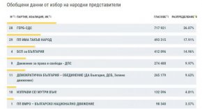 ГЕРБ/СДС - 26,07%. Формацията печели в 23 многомандатни района.