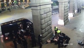 Потресаващите кадри от официалните охранителни камери бяха излъчени в петък по време на парламентарната комисия, проучваща полицейското насилие по време на антиправителствените демонстрации миналата година.