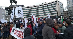 „Тук сме за пореден ден, ние протестираме от много години - и против ЕС, и против НАТО, и против Закона за социалните услуги, против всичкото това, което прави България да се обезбългарява. Политиците правят и следват плана за унищожение“, каза пред БНР една от участничките в протеста, държаща плакат с надпис “Възмездие“.