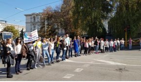 Докато тече среща между здравния министър Кирил Ананиев и техни представители, останалата част от протестиращите блокираха движението пред сградата на МЗ на бул. „Мария Луиза” и в двете посоки с жива верига.