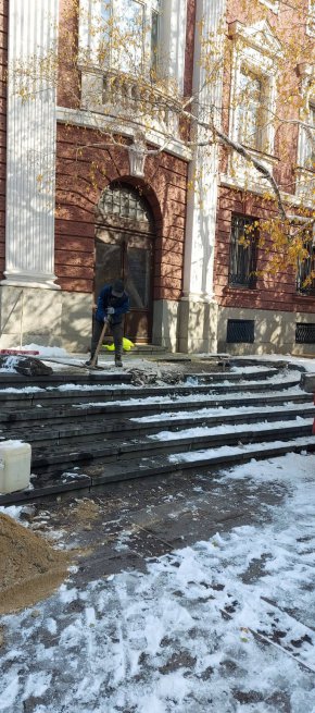 Ромски неквалифицирани разбивачи по незнайно чия заповед започнаха да разбиват каменните плочи, които са част от архитектурния ансамбъл на Народния театър. Освен, че снеговитият и влажен ден е най-малко подходящ за подобна дейност, поради очакваните по-късно размествания, не е никак ясно къде отиват старите плочи и какво ги заменя. Неизвестно защо се разбиват плочи и на своеобразния площад пред театъра, отново без разумна причина. Вижте галерията от снимки!