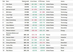 Индексът на милиардерите на Bloomberg е ежедневна класация на най -богатите хора в света. Числата се актуализират в края на всеки търговски ден в Ню Йорк. Според тях технологичният магнат и основател на компаниите Tesla и SpaceX Илон Мъск днес бие Джеф Безос с повече $39 млрд. повече. Вижте другите начело в класацията: