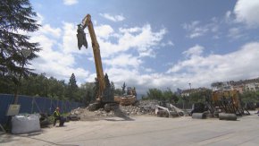 След като бяха свалени бронзовите пластики и металните конструкции, днес приключи и демонтажът на бетонните структури. Той се извърши с хидравлична ножица и водна завеса, както и багер с хидравличен чук.