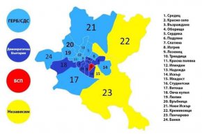 Изобщо, пълна каша: Западът на София е ГЕРБ, Изтокът е червен и независим, а центърът е тъмносин. Град от много градове.