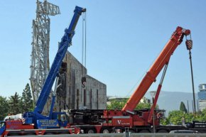Както 19’ вече писа нов кран за демонтирането на паметника бе поставен пред НДК в сряда, а старото съоръжение – премахнато. Стойността на изгорелия автокран е 1 млн. евро.
