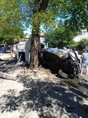 Един от автомобилите е с газово устройство, което е предизвикало взрив след сблъсъка. По непотвърдена информация е загинала млада жена, която била във въпросната кола, предаде Нова тв.