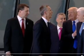 На видеото ясно се вижда, че Тръмп грубо избутва с ръка своя равнопоставен колега, за да заеме най-предното и видимо място сред лидерите на страните членки в Алианса.