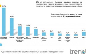 Близо до чертата остават БСП с 3,8% и МЕЧ с 3,6 на сто.