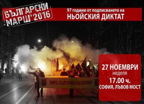 На 27 ноември (неделя) в 17.00 ч. в София ще се проведе традиционният Български марш, с който ВМРО отбелязва годишнината от подписването на Ньойския договор, съобщиха от пресцентъра на движението.